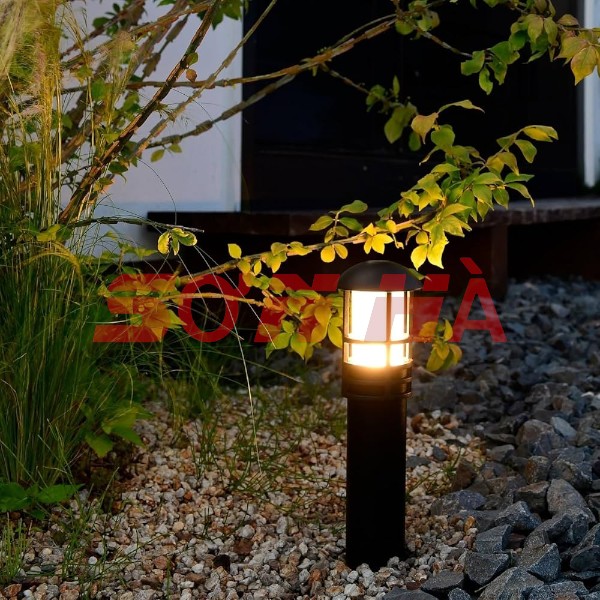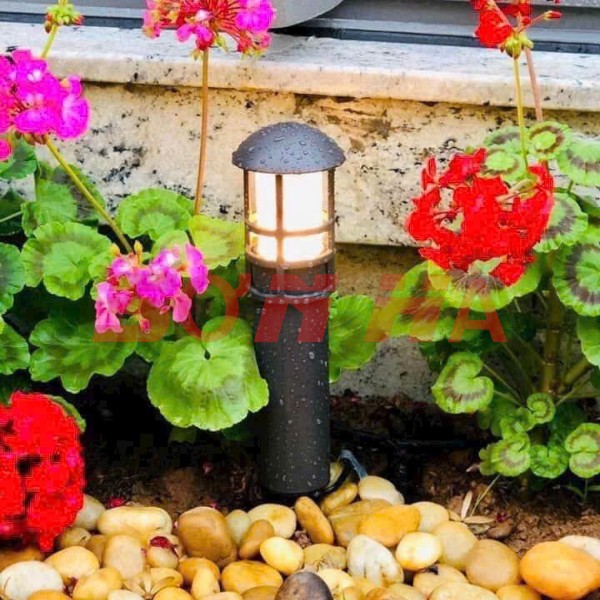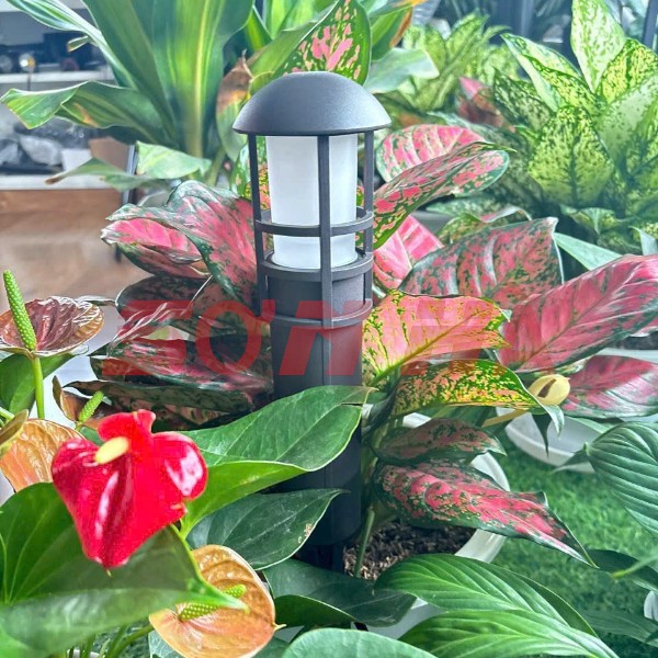 Nắp đèn cong tròn, chống đọng nước. Đế đèn chắc chắn, dễ cắm xuống đất hoặc cố định bằng vít.