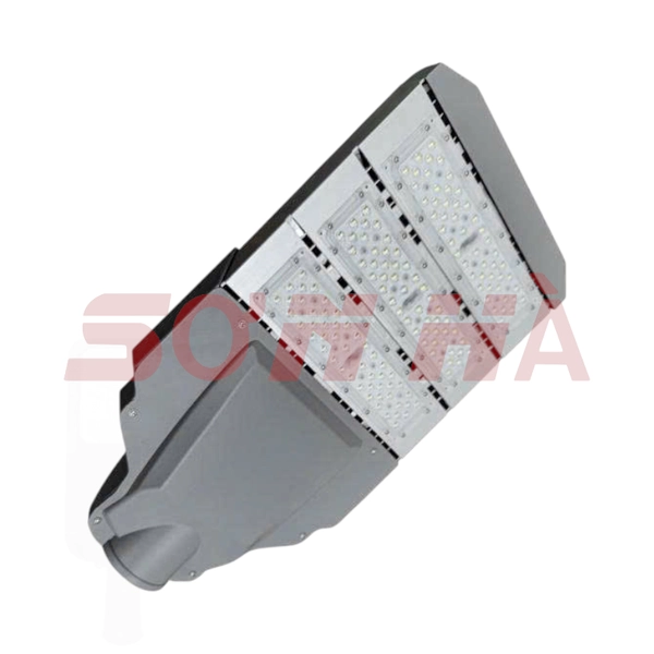 Đèn đường LED SH-D04 gây ấn tượng với thiết kế dạng module xếp lớp, mỗi module gồm nhiều chip LED chất lượng cao, tạo ra ánh sáng mạnh, đồng đều và hạn chế tối đa tình trạng điểm tối trên mặt đường. Thân đèn được làm từ hợp kim nhôm đúc nguyên khối, phủ lớp sơn tĩnh điện cao cấp giúp chống ăn mòn, chống oxy hóa và giữ màu bền đẹp theo thời gian. Nhờ chuẩn bảo vệ IP66, đèn hoạt động ổn định dưới mưa lớn, bụi bẩn và điều kiện thời tiết khắc nghiệt.