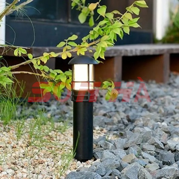 Nắp đèn cong tròn, chống đọng nước. Đế đèn chắc chắn, dễ cắm xuống đất hoặc cố định bằng vít.